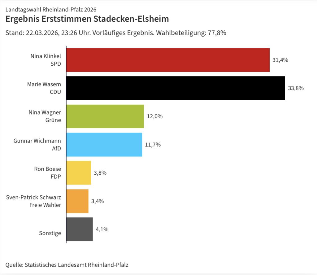 Wir, die Vertreter der Liberalen in Stadecken-Elsheim, lassen uns vom enttäuschenden Wahlergebnis der Landtagswahl nicht entmutigen. Vielmehr sehen wir darin einen Ansporn, unsere Ideen, Vorschläge und unsere Arbeit im Gemeinderat und in der Gemeinde noch deutlicher sichtbar zu machen – im konstruktiven Dialog mit den anderen Fraktionen.