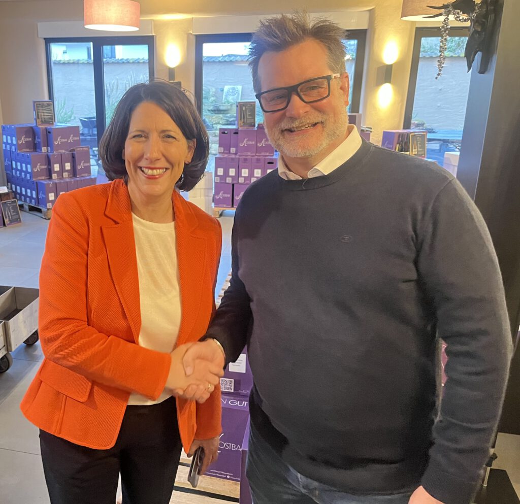 Fragen der Wirtschaft, Gesundheitsversorgung und Bildung standen im Mittelpunkt beim Treffen von Wirtschaftsministerin Daniela Schmitt mit Ron Boese, unserem FDP-Direktkandidaten im Wahlkreis Ingelheim.